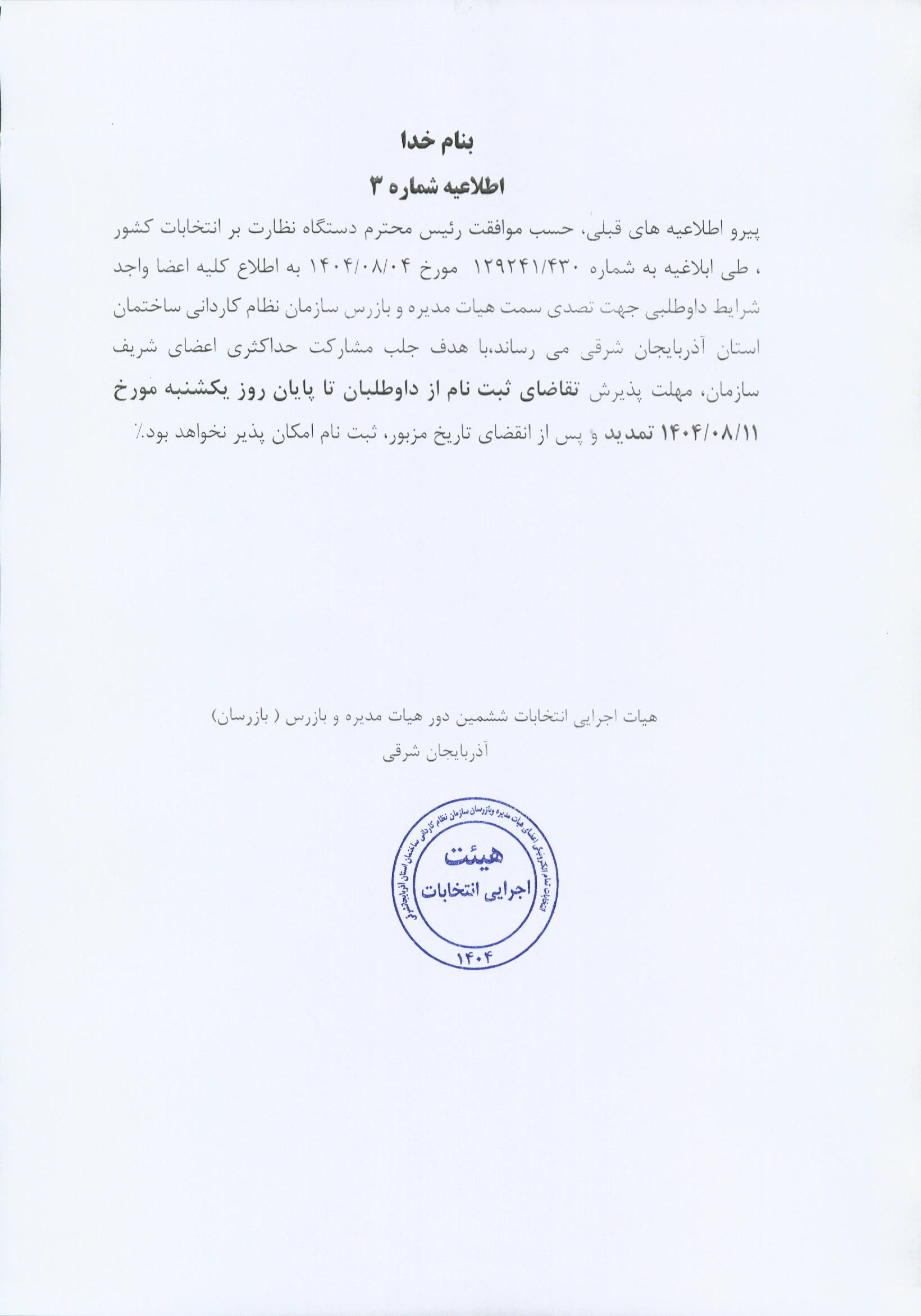 اطلاعیه شماره 3 انتخابات سازمان نظام کاردانی ساختمان آذربایجان شرقی
