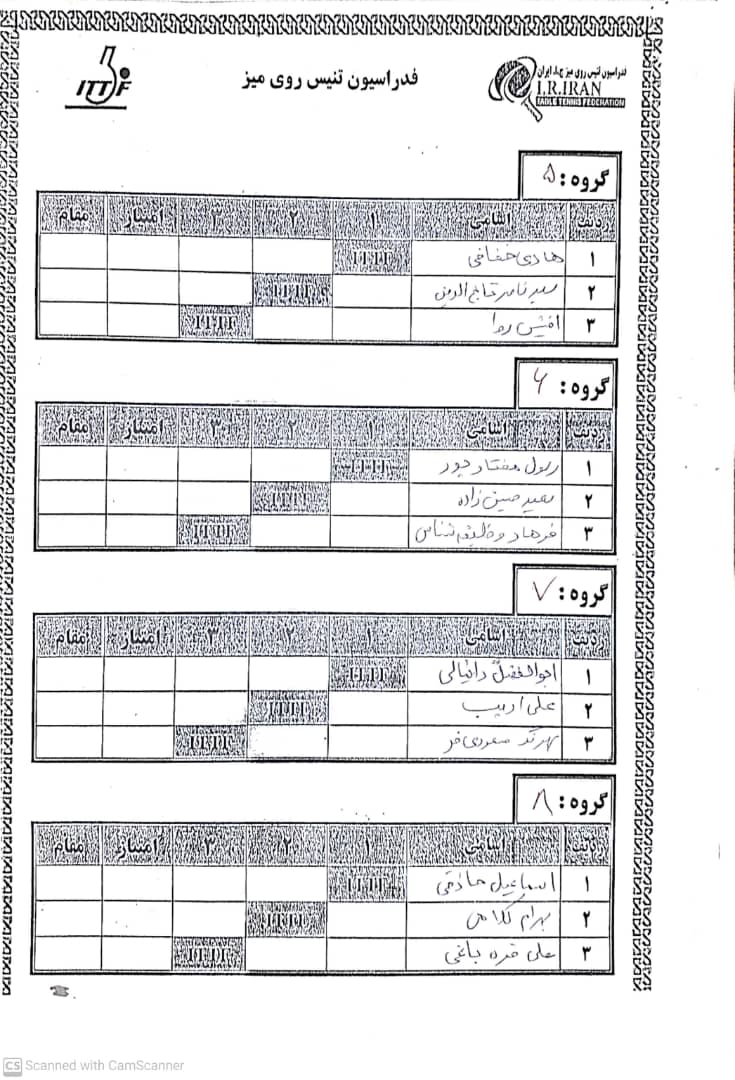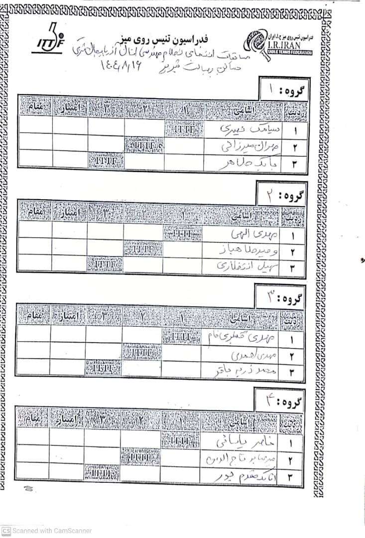 آئین نامه و گروه بندی مسابقات تنیس روی میز