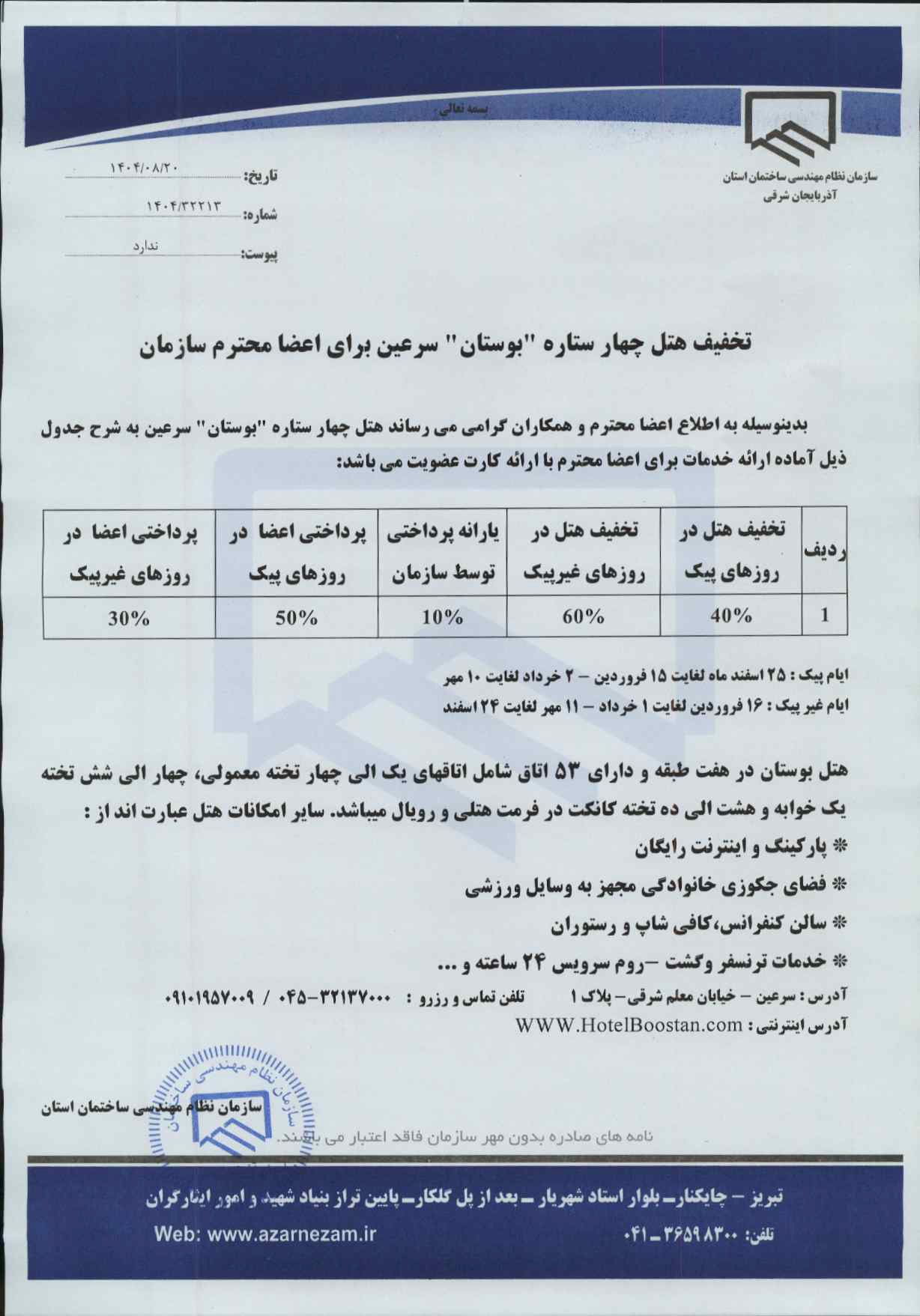تخفیف هتل بوستان سرعین