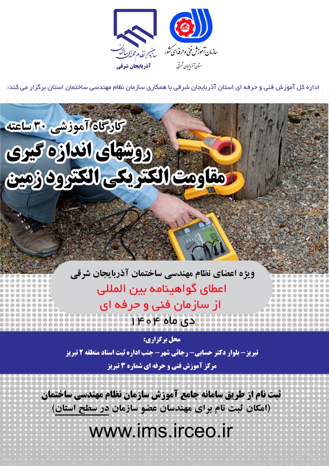 اطلاعیه ثبت نام در کارگاه آموزشی روشهای اندازه گیری مقاومت الکتریکی الکترود زمین