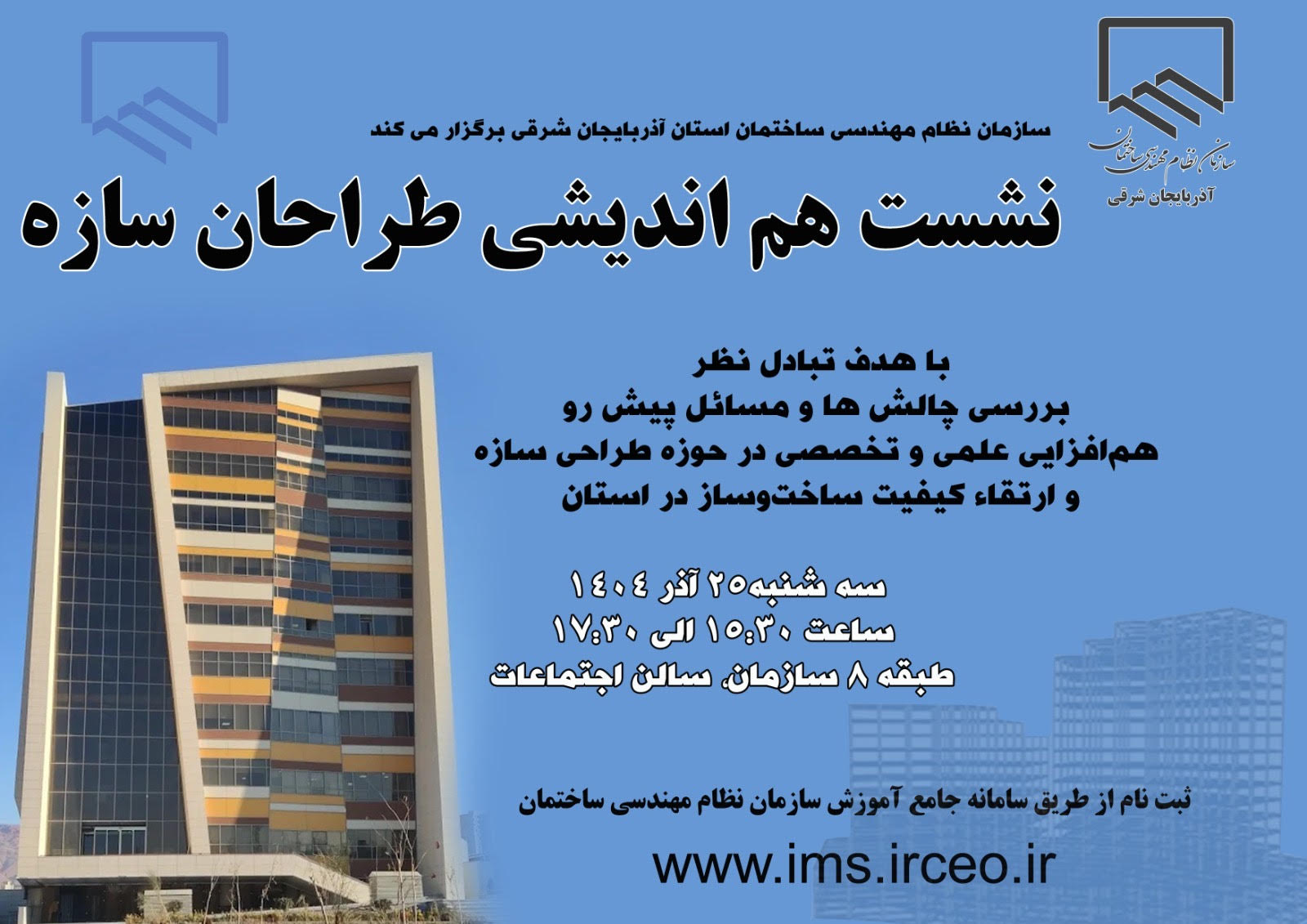 اطلاعیه ثبت نام در نشست هماندیشی طراحان سازه