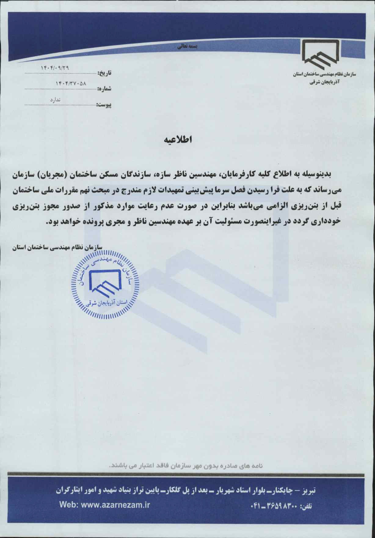 اطلاعیه تمهیدات بتن ریزی در فصل سرما