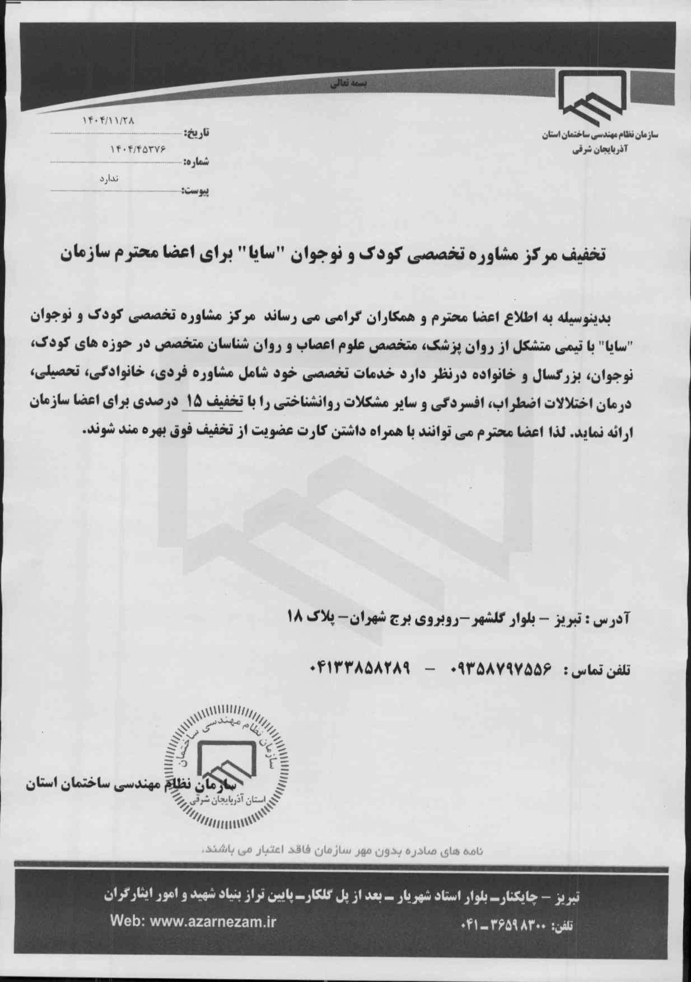تخفیف مرکز مشاوره سایا
